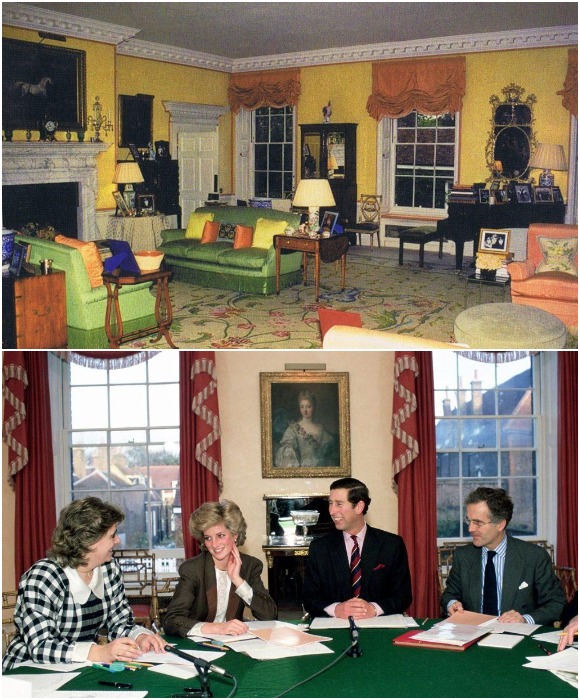 Первый этаж, как и полагается, был отдан для организации гостиных, столовых и комнат отдыха, где проходили приемы, поэтому в них преобладает сдержанный стиль. А вот их с Чарльзом апартаменты, в особенности ее личный кабинет, стал отражением пристрастий Дианы: пастельная сине-розовая гамма отделочных материалов (включая мебель), массивный рабочий стол из красного дерева, большой белый шкаф для ее коллекции книг. Детский же этаж – достоин будущих королей. Помимо множества игрушек и добротной мебели любящая мама привнесла сочные краски в качестве акцентов.