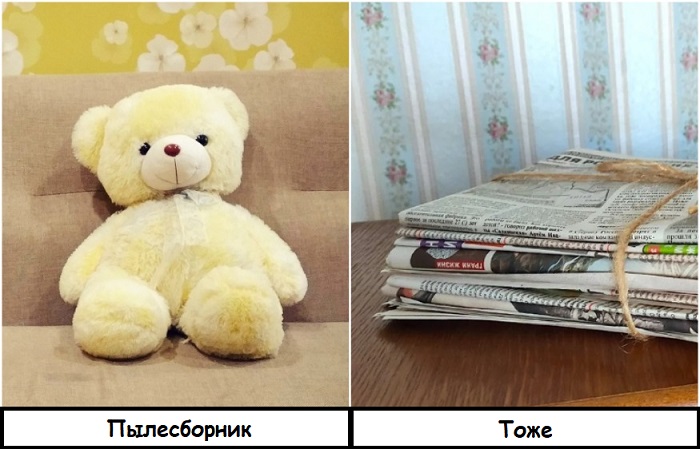 Мягкие игрушки и газеты входят в категорию пылесборников