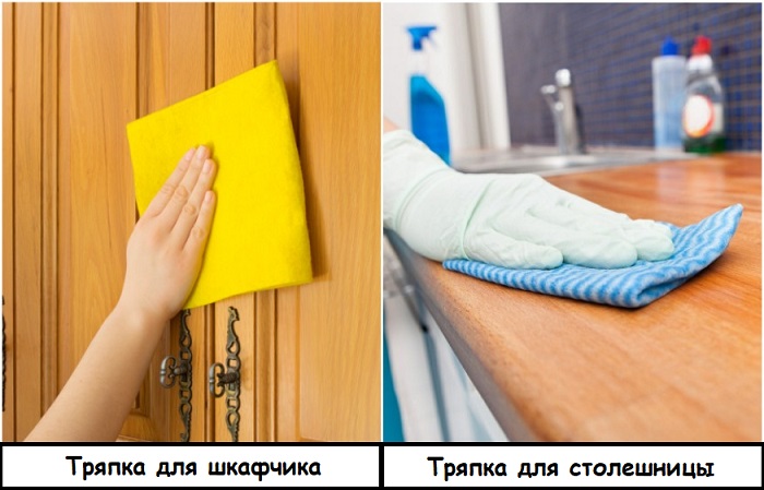 В начале вытирайте поверхность шкафов, а в конце - плинтуса