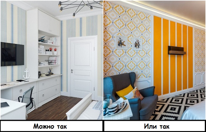Самый простой и понятный способ сделать потолок зрительно выше – использовать обои с вертикальным принтом или сделать такой рисунок краской. Зачастую это полосы, однако можно прибегнуть и к другим узорам, устремленным вверх. Кстати, принт необязательно должен присутствовать на всех поверхностях – легкого акцента на одной стене будет вполне достаточно. Не забывайте, что у этого способа есть свои нюансы, в частности, нужно обязательно учитывать геометрию помещения. Так, если комната длинная, вертикальные полосы нужно использовать на широкой стене. Если украсить принтом узкую поверхность, помещение зрительно станет еще длиннее. На заметку: В качестве вытянутых линий можно использовать архитектурные элементы, например, колонны. Также обратите внимание на молдинги. Обычно ими прикрывают стыки стен и потолка, спуская широкий кант на стену, но мы предлагаем сделать наоборот. Пусть основной декор идет по потолку – так он будет казаться продолжением стены. В этом случае комната вытянется.