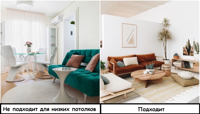 Мебель на высоких ножках не подходит для комнат с низкими потолками