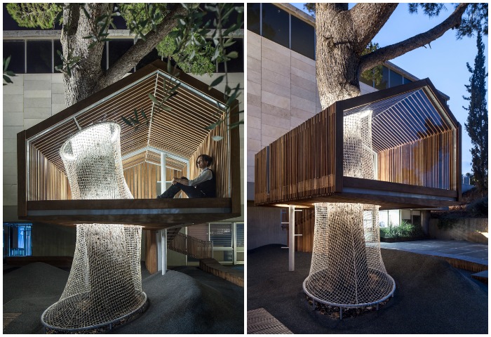 Домик на дереве во дворе Музея Израиля – место развлечений не только ребятни (Иерусалим). | Фото: architizer.com.