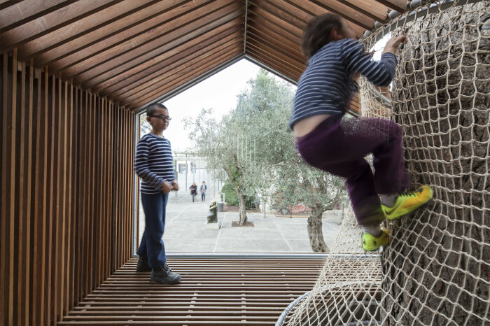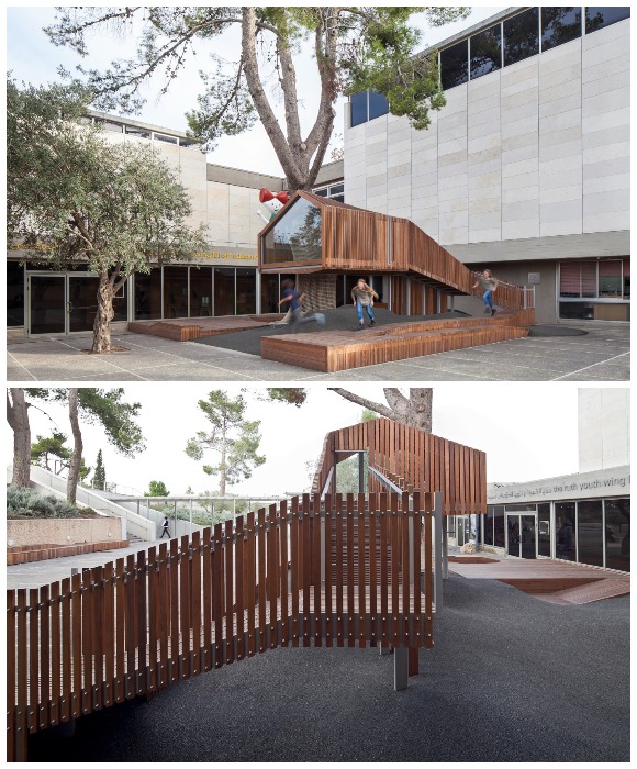 В Музее Израиля в Иерусалиме у Молодежного крыла художественного образования был неприметный дворик, который превратили в основное место отдыха посетителей. Благодаря стараниям архитекторов взрослым и детям теперь есть чем себя занять, одни могут наслаждаться замысловатыми арт-объектами, а вот ребятня –вволю поиграть в настоящем домике на дереве. Хотя и их родителям не возбраняется реализовать свою детскую мечту.