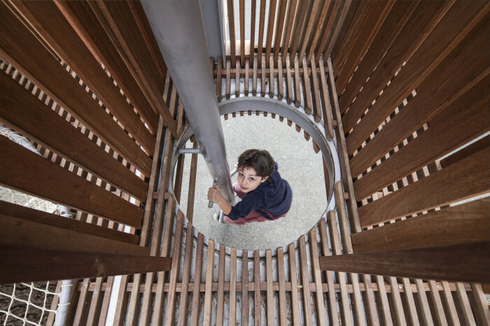 В домик на дереве можно попасть не только по ступеням, но и по «веревочной» лестнице, установленной на одной из опор (Israel Museum, Иерусалим). | Фото: plataformaarquitectura.cl.