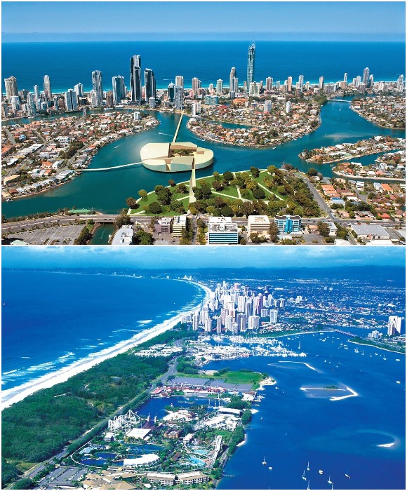 Они вкладывали баснословные деньги, чтобы создать километры каналов с бирюзово-голубой водой, бесконечные золотые пляжи с лагунами, прикрытые от палящих солнечных лучей приятной зеленью субтропических лесов, в строительство ультрасовременных отелей с умопомрачительными зонами развлечений, которые могут дать фору не только Венеции, но и большинству городов, появившихся на карте мира не одну сотню лет назад. Хотя такая роскошь и бурлящая жизнь не всем придется по карману и по душе, тем не менее Золотой берег является одним из самых впечатляющих мест на Земном шаре, где длина рукотворных каналов превышает 850 км.