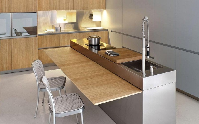 Маленькие квартиры грешат нехваткой пространства, а иногда так хочется собраться всей семьёй за одним столом. Поэтому, дабы сэкономить место и не захламлять квартиру ненужными вещами, выберите стол с выдвижной столешницей. Удобно, просто и компактно.