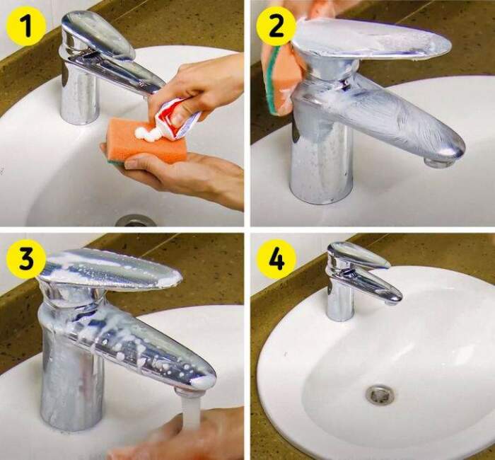 Используйте зубную пасту для чистки раковины и кранов. Фото: bing.com.