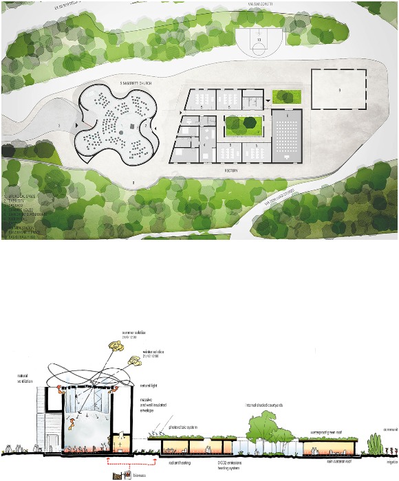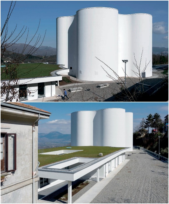 Стоит еще подчеркнуть, что новый архитектурный ансамбль, включающий непосредственно церковь, приходские помещения с несколькими классными комнатами и резиденцией для священнослужителей, полностью соответствует нормам устойчивой архитектуры. Для повышения энергоэффективности и экологичности храмового комплекса помимо особенной штукатурки, удерживающей тепло и хорошо впитывающей влагу, крыши церкви и приходского строения покрыты травой. Для обеспечения структуры электричеством Mario Cucinella Architects предусмотрели использование альтернативных возобновляемых источников энергии и соответствующих систем жизнеобеспечения. Несмотря на то, что новый культурно-религиозный центр соседствует с Национальным парком, возле него разбили небольшой сад и цветники с огородами. А вот новое видео нашего канала: В Милане завершилось строительство ультрасовременного медицинского комплекса, способного очищать городской воздух от смога, его также разработали специалисты архитектурной студией Mario Cucinella Architects.
