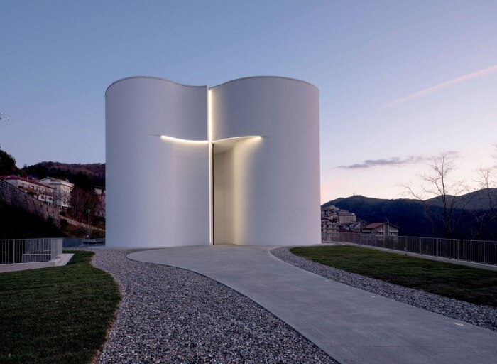 Современное храмовое строительство значительно отличается от канонов традиционного проектирования прежних лет, что позволяет творцам создавать уникальные архитектурные объекты ничем не уступающие в величии и монументальности. Ярким примером нового видения культовых объектов стала белоснежная монолитная церковь Санта Мария Горетти в Морманно, которая стала эффектным дополнением к городскому пейзажу, граничащему с горным Национальным парком Поллино (Италия).