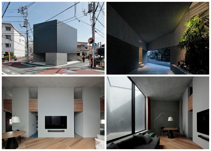 Учитывая катастрофическую нехватку земельных ресурсов в переполненных японских городах, неудивительно, что на их улицах появляются частные дома неожиданных форм и дизайнерских решений. Взять, к примеру, недавно появившийся 3-этажный дом на углу одного из самых оживленных районов Токио, который отличается тем, что у него 5 углов и нет ни единого фасадного окна. Такое нетривиальное решение было принято сразу по нескольким причинам.