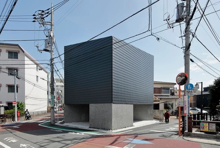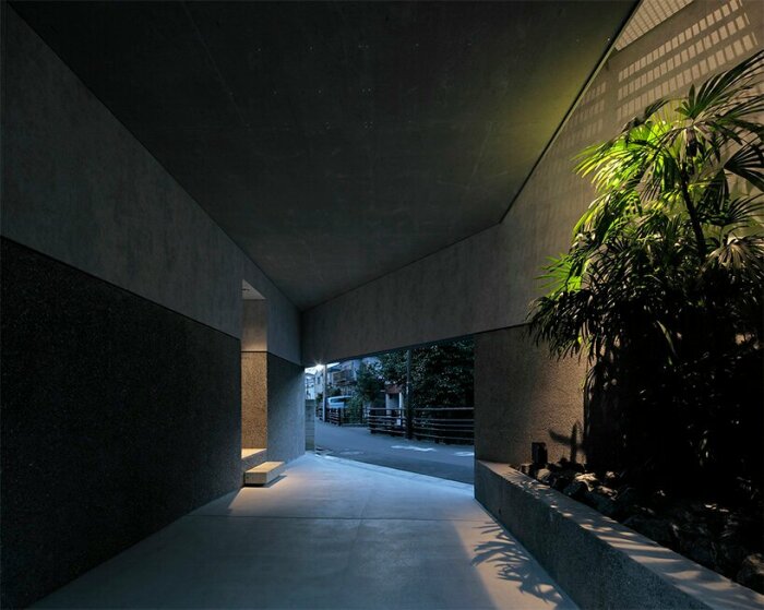 Часть первого этажа сделали со сквозным проемом, чтобы обеспечить прохожих безопасным переходом (Murakoshi House, Япония). | Фото: designboom.com.