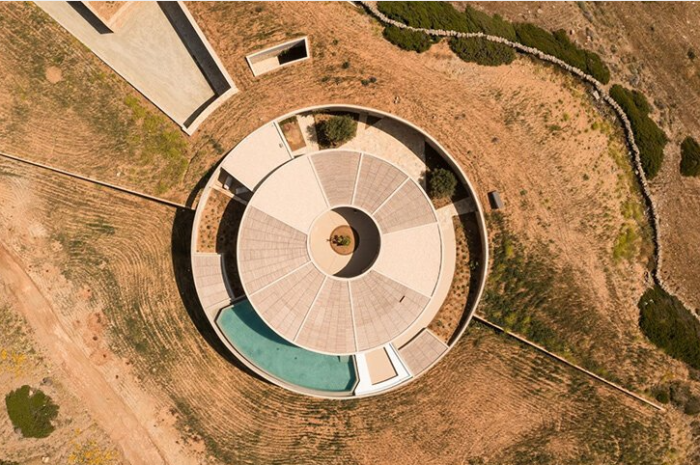 На каменистом склоне холма острова Антипарос появилась современная резиденция, напоминающая компас (вид на Cronus сверху). | Фото: thespaces.com.