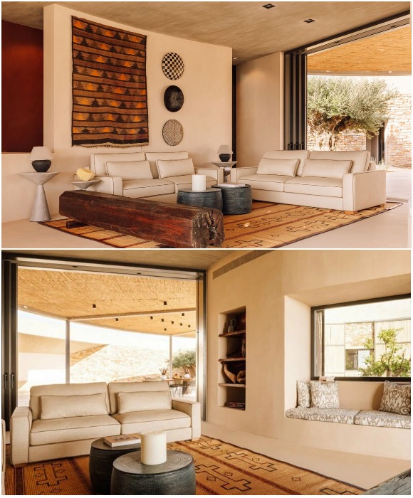 Гостиную украшают колоритные аксессуары с этническими мотивами (Cronus, Греция).