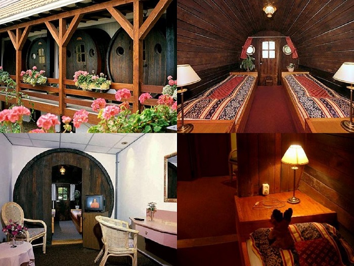 Казалось бы, что в первую очередь, привлекает к этому отелю посетителей удачное расположение - в гавани нидерландского города Ставорен, ведь там открываются потрясающие виды на побережье и проплывающие мимо яхты. Однако наибольшей популярностью пользуются у гостей всего четыре номера. А всё потому, что они расположены в настоящих бочках из-под швейцарского вина, которые ранее активно эксплуатировались. Ёмкость каждой из них составляет 14,5 тысяч литров. Это позволило вместить там полноценный уютный номер, а отдельной атмосферы добавляет лёгкий винный запах внутри бочек.