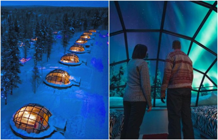 Пожалуй, многие из нас хотели бы попробовать пожить в аутентичной лапландской избушке, более известной как иглу. Вот только там не очень тепло и не очень комфортно. Однако отель Igloo Village Kakslauttanen сумел удачно совместить атмосферу проживания в полярном климате с удобствами, которые так ценятся многими людьми. Они построили два десятка технологичных иглу, которые отличаются повышенной комфортностью. Однако главной их фишкой являются стены и потолок из термального стекла, что позволяет, находясь в номере, любоваться заснеженным пейзажем днём и северным сиянием ночью.