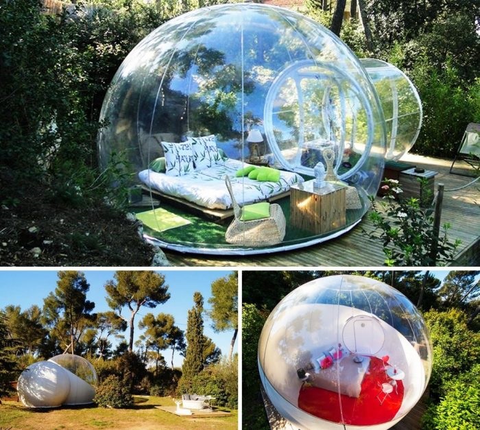 Ещё один сферический концепт гостиницы в лесу, однако на этот раз всё размещено на улице. Речь идёт о Attrap’Reves Montagnac, который предоставляет возможность переночевать в сосновом бору, лёжа на траве и созерцая звёздное небо. Это становится возможным благодаря построенным номерам в форме пузырей из прозрачного эластичного материала. Таким образом, днём постоялец защищён от негативного воздействия ультрафиолета, а ночью - укрыт от насекомых и сырости. А для любителей понаблюдать за звёздами, в номерах предусмотрен телескоп.