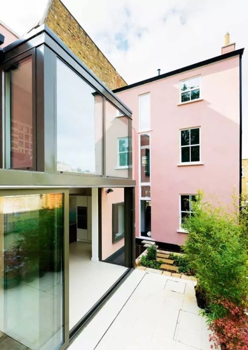 Добавление нового этажа к дому - серьёзная задача, но она может добавить столь необходимое пространство и часто приводит к фантастическим конечным результатам. Приобретая ветхий двухэтажный дом с двойным фасадом с фото выше, владелец стремился к тому, чтобы дом больше соответствовал соседним современным домам. Согласитесь, добавить этаж куда дешевле, чем снести старый дом и выстроить новый с нуля. Решение заключалось в том, чтобы добавить не только современную застекленную двухэтажную пристройку сзади, но и полностью новый третий этаж. Внешние стены были заново оштукатурены, а оконные створки были сконструированы таким образом, что новый этаж плавно перекрывает старый.