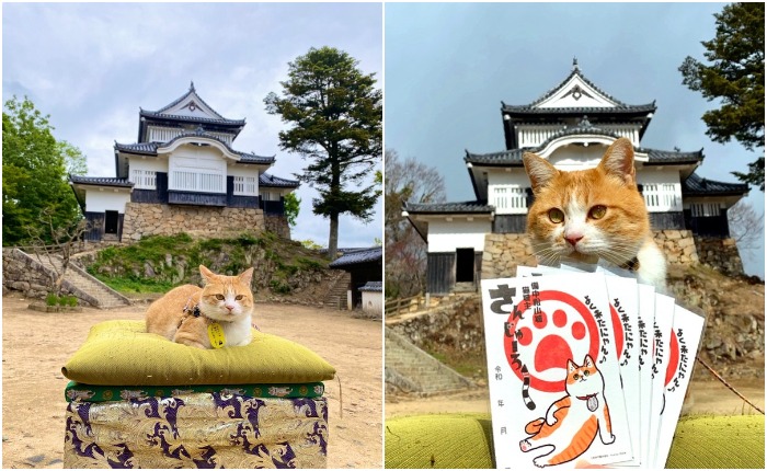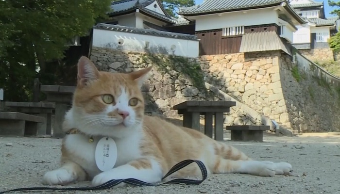 Именно в непогоду прибился к замку бродячий рыже-белый кот, которого прикормили сердобольные смотрители. Как известно, коты за пару дней «приручают» человека и становятся полноправными хозяевами дома, но только в этом случает закономерность проявилась в масштабах целого замка. Очень скоро мурлыка получил не только кличку – Сандзюро, но и титул. С легкой руки членов Туристической ассоциации города Биттю-Такахаси, его стали называть «повелителем» и церемониальным «лордом» замка. Теперь «лорд» встречает гостей дружелюбным мурлыканьем, когда его любвеобильные гости пытаются погладить. При этом он совсем не обращает внимание на толпы людей и постоянные вспышки фотокамер, вольготно разгуливая по территории замка (хотя в последнее время он сидит на поводке и роскошной подушке).