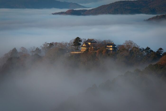 Затерянный среди туч средневековый замок Биттю-Мацуяма – единственный полностью уцелевший средневековый замок Японии (Биттю-Такахаси). | Фото: nippon.com.