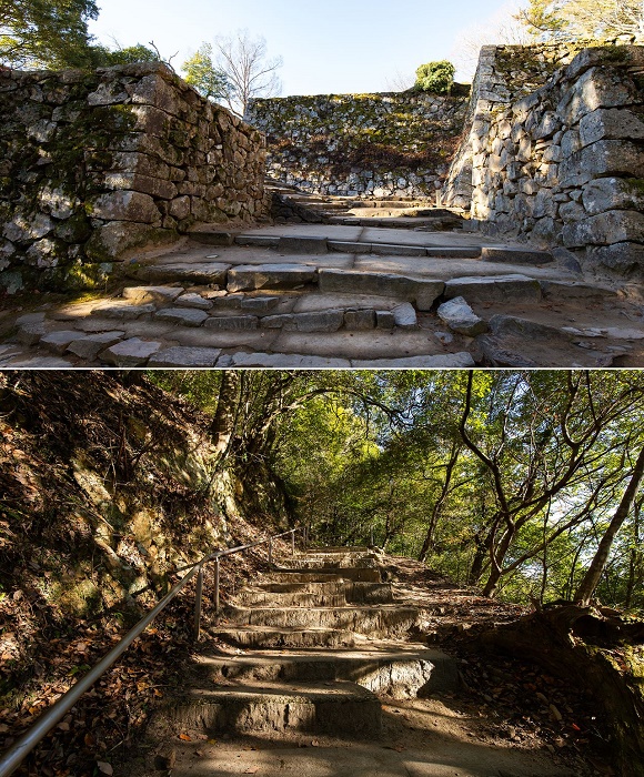 Крутые лестницы в былые времена служили в качестве защиты, а в период реставрации – очень усложняли доставку стройматериалов (Bitchu-Matsuyama Castle, Япония). | Фото: nippon.com.