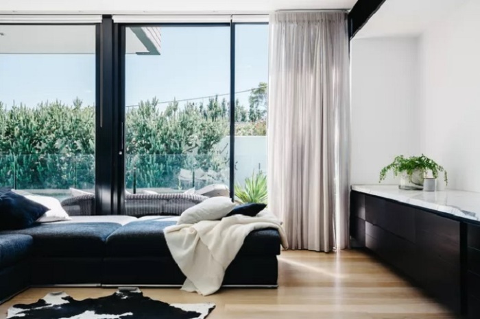 Прозрачное полотно – это занавеска из легкой полупрозрачной ткани. Он предлагает немного уединения и рассеивает немного света. С точки зрения дизайна это смягчает любое окно. Такая идея лучше всего подходит для жилых помещений, где вы не беспокоитесь о конфиденциальности.