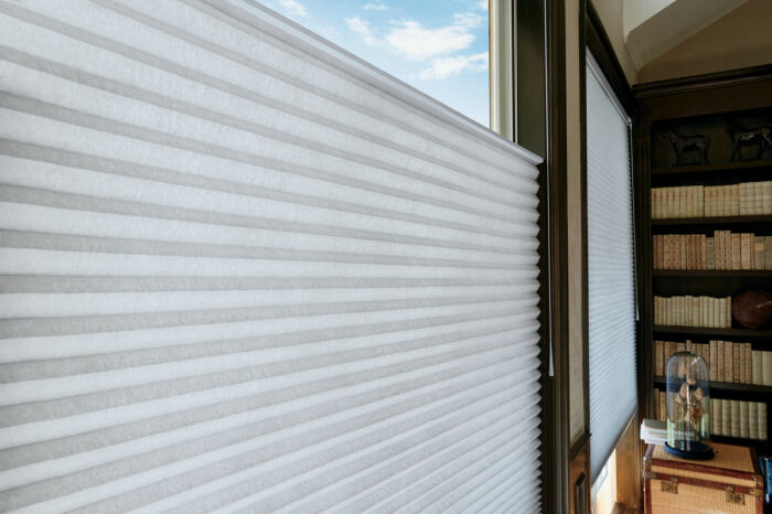 Сотовые или ячеистые шторы обычно изготавливаются из ткани, которая складывается таким образом, что шторы со стороны выглядят как соты. Существуют варианты фильтрации света, а также полностью блокирующие свет стили. Они также могут помочь утеплить окна. Эти шторы подойдут для любых комнат.