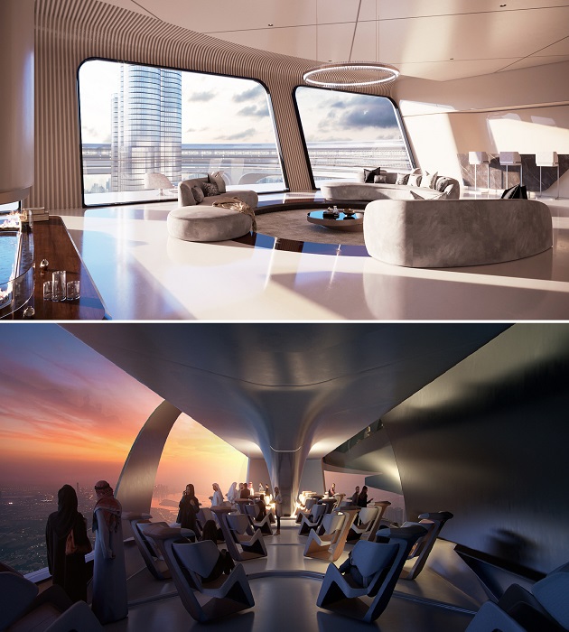 Учитывая плотность застройки Дубая и стремление к освоению вертикальных пространств, неудивительно, что креативные архитекторы разместили ультрасовременный объект на высоте 550 метров, обеспечив тем самым каждое помещение города-будущего захватывающими видами из окон и более чистым воздухом. Неожиданное перераспределение приоритетов делает проект довольно перспективным, ведь в современных мегаполисах построить новое сообщество, да еще и в центре существующего города – просто невозможно. А если его поднять над основными постройками, то получится многоярусный город-будущего, для обустройства задействуется минимум земельных ресурсов (только для установки опор).