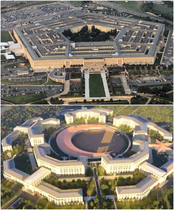 Интересный факт: Заявления турецких властей о том, что их Пентагон (в переводе означает пятиугольник) превзойдет американский, не простое хвастовство. Это подтверждают цифры. Если американский комплекс имеет общую площадь помещений 604 тыс. кв. метров, включая все этажи, коридоры, бункеры и внутренний двор, то турецкий военно-административный комплекс «Полумесяц и звезда» будет иметь общую площадь крытых помещений 890 тыс. кв. метров, при этом займет территорию площадью 12,6 млн «квадратов» (в США всего 140 тыс. кв. м). Единственное, что в Турции планируют «переселить» под общую крышу около 15 тыс. сотрудников всех силовых структур и ведомств, а вот в США – их более 26 тысяч.