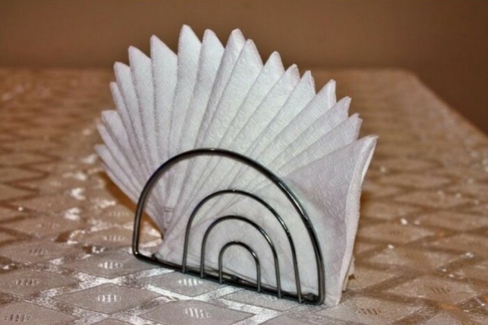 Каждый вид салфеток и повод диктует свои варианты сервировки. Для обычных посиделок в кругу семьи вполне достаточно красиво сложить бумажные салфетки в салфетницу, подобранную под общий стиль интерьера. Согласно этикету, на столешнице матерчатые салфетки могут быть сложены в виде плоской фигуры или трубочкой. Сделали сложное оригами? Положите его в бокал или тарелку. Все салфетки за столом должны быть сложены единообразно.