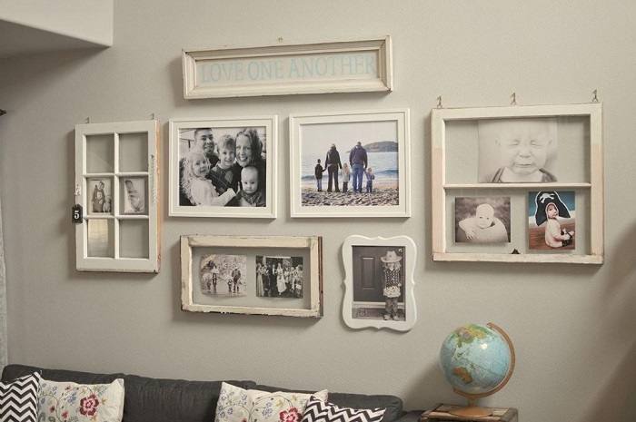 Выделите одну стену под семейные фотографии. / Фото: designmyhome.ru
