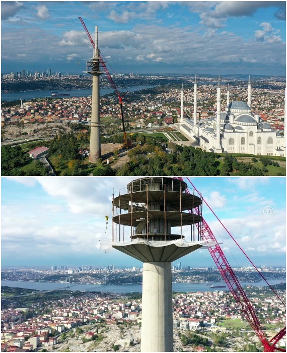 Напомним: Разработкой проекта знакового объекта Стамбула занимались специалисты двух архитектурных компаний стамбульского бюро Melike Altinişik Architects (MAA) и DS Architecture. Именно их проект победил в престижном международном конкурсе на лучший дизайн вещательной вышки. В 2011 году проект был утвержден, но понадобилось 5 лет на исследования местности, включая устойчивость почвы, направление ветра и воздействие на окружающую среду. Строительство и обустройство заняло еще 5 лет, торжественное открытие башни состоялось в 2021 году. После ввода в эксплуатацию, телебашня заменила большую часть старых вышек, разбросанных на двух ближайших холмах. Для бесперебойного функционирования в новой телерадиобашне установили 120 ультрасовременных передатчиков.