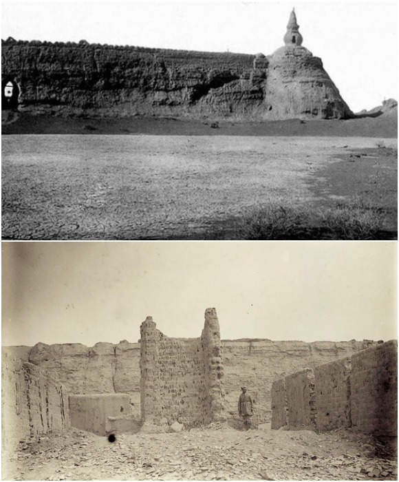 В начале прошлого века экспедиции удалось застать одну из башен крепости и храмовое сооружение (Хара-Хото).