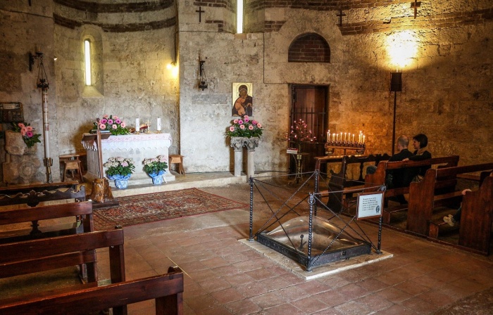 Исследования показали, что меч в камне находится с XII века, о чем свидетельствует хрупкость металла (Cappella di San Galgano, Кьюздино). | Фото: provincedesienne.com.