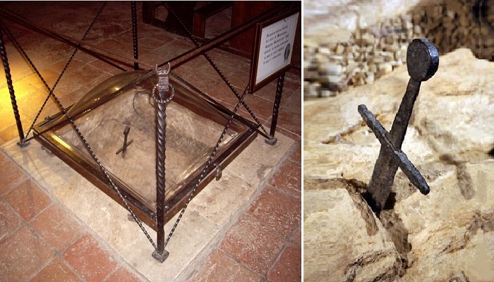 Камень, с пронзившим его мечом, существует и не в легендах, а в старинной часовне итальянской деревни Кьюдзино (Cappella di San Galgano).