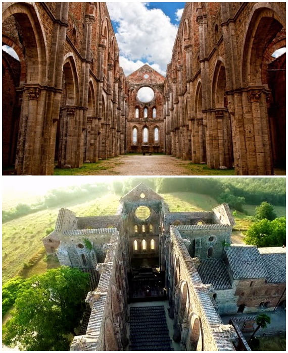 Все, что осталось от былой красоты аббатства, которое играло немаловажную роль в культурной и экономической жизни региона (Abbazia di San Galgano, Кьюздино).