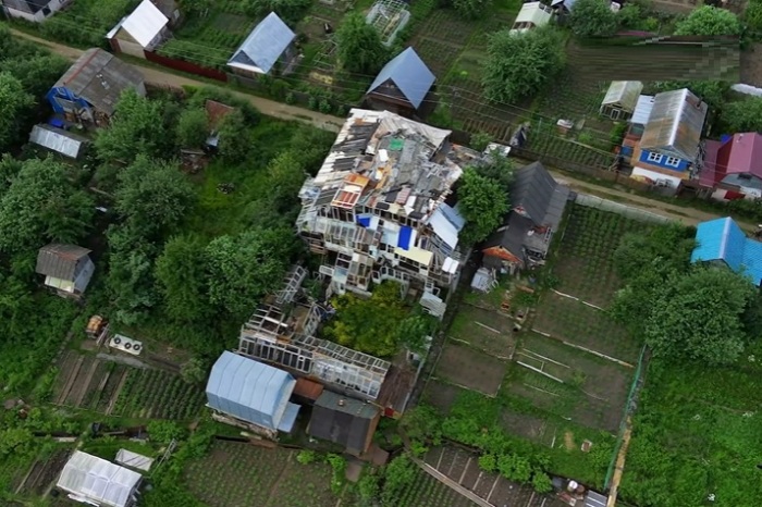 Владелец участка в СНТ «Нефтяник» решил реализовать свою мечту – построить огромный дом, правда, материал выбрал совсем непрезентабельный («Дом-монстр», Нефтекамск).