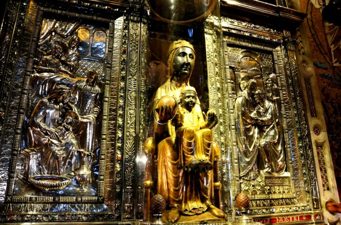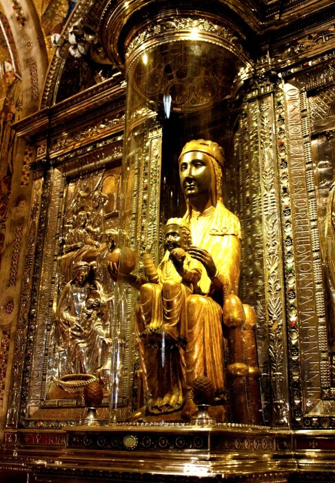Чудотворная статуя Девы Марии с младенцем на руках вырезана из древесины черного тополя и облачена в золотые одежды (монастырь Монсеррат, Испания). | Фото: vsegda-pomnim.com.