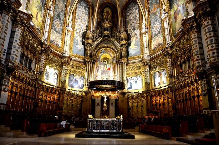 Алтарная часть в главном зале Базилики Девы Марии Монсерратской (Каталония, Испания).| Фото: thefunbank.blogspot.com.