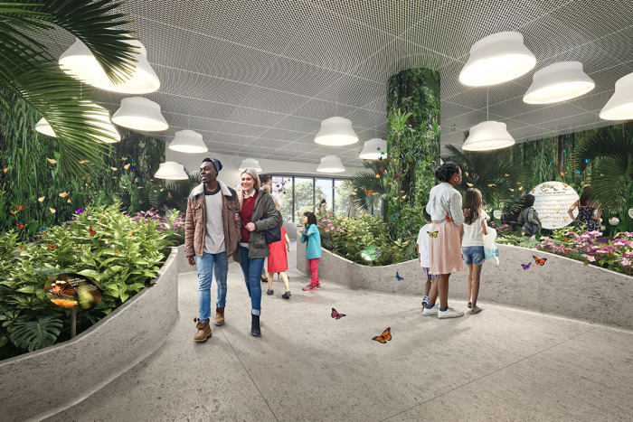 Центр науки Гилдера будет включать в себя новый круглогодичный вивариум бабочек, где посетители смогут пообщаться со свободно летающими красавицами (концепт реорганизации AMNH). | Фото: worldarchitecture.org.