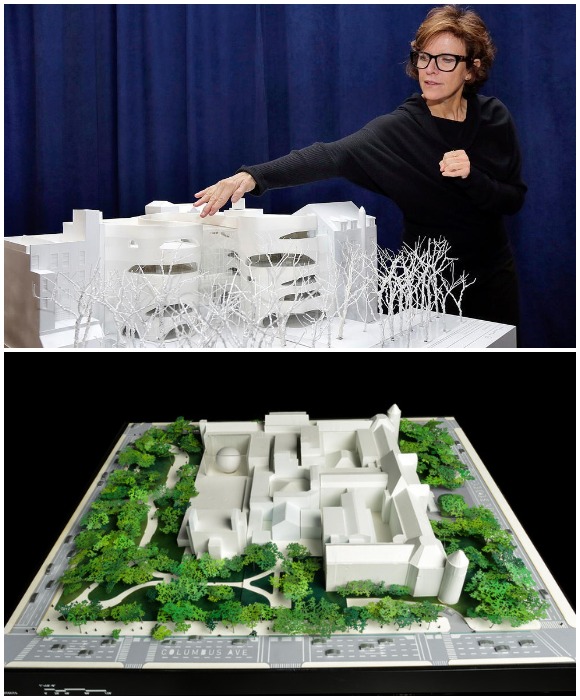 Руководитель проекта реконструкции Жанна Ганг и макет обновленного кампуса Американского музея естественной истории.