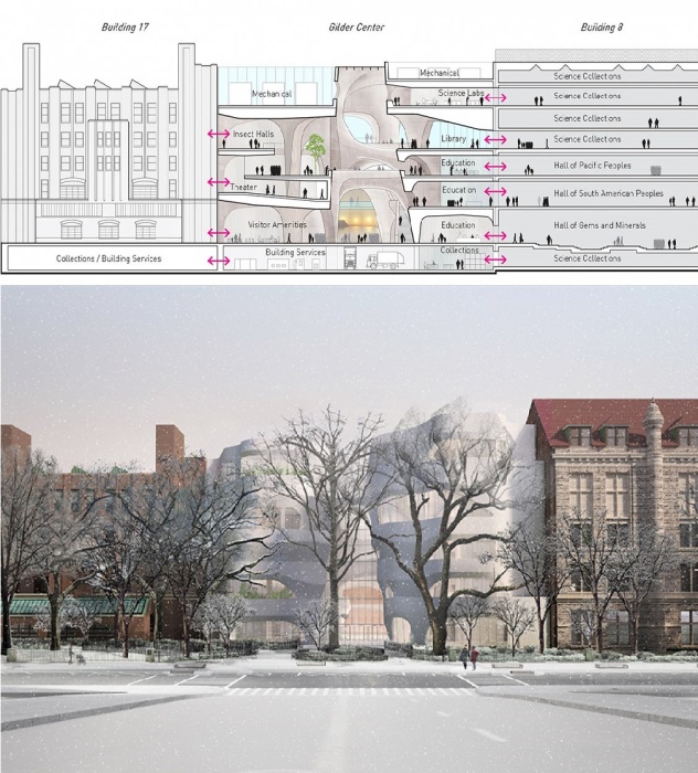 Центр науки, образования и инноваций Ричарда Гилдера будет содержать около 4 миллионов научных образцов (концепт реорганизации AMNH).