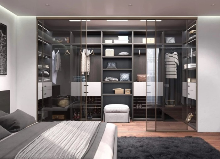 Стеклянная перегородка в спальне. / Фото: dg-home.ru