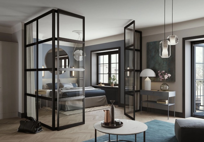 Во времена СССР было только два варианта сделать зонирование в рамках одной комнаты - повесить занавеску или поставить тонкий шкаф перпендикулырно стене. К счастью, эти времена позади, и теперь у нас куда больше возможностей умного зонирования. В данном материале речь пойдёт о весьма трендовом интерьерном решении дня сегодняшнего - стеклянных перегородках для зонирования в квартирах-студио и люых других.