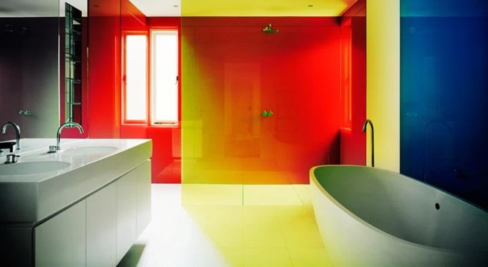 Цветная стеклянная перегородка. / Фото: houzz.ru