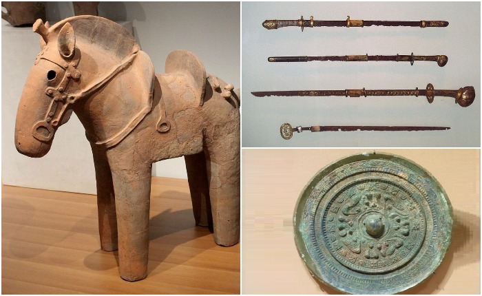 В гробницах обнаружены предметы быта, украшения, оружие, фигурки животных (Япония).