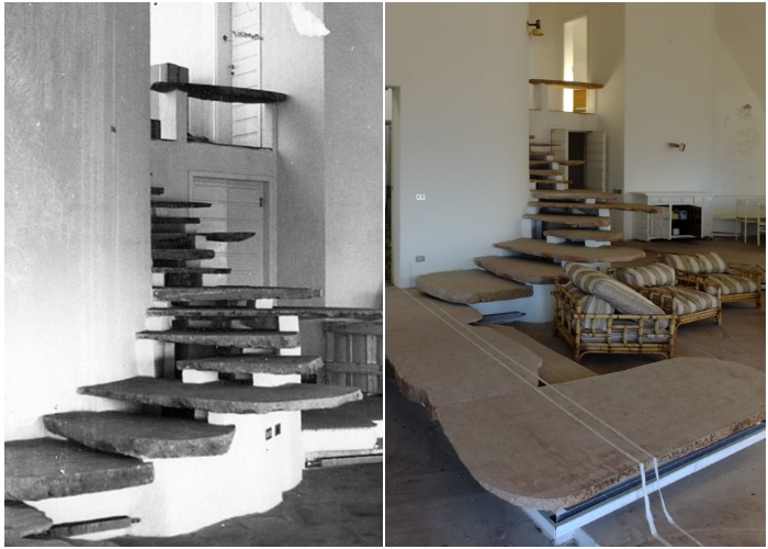 «Парящая» лестница создана из пластов розового гранита (La Cupola, Коста-Парадизо).