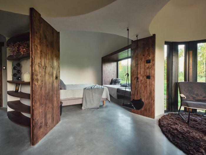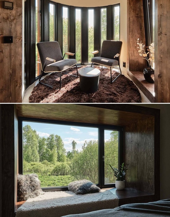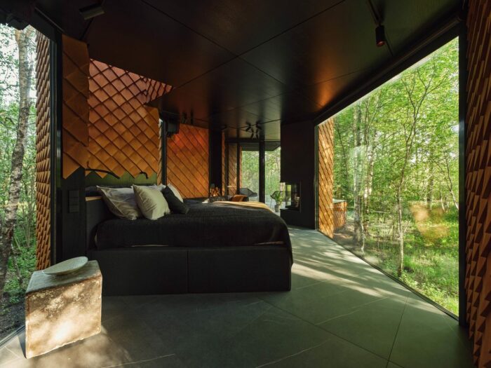 Центральное место в лесной вилле KASEKE занимает спальня и гостиная у панорамного окна (Maidla Nature Resort, Эстония). | Фото: floornature.com.