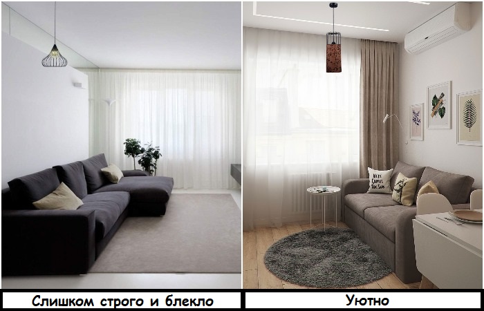 Введите в поиске запрос «интерьеры в стиле минимализм» и внимательно посмотрите на фото-результаты. Да, в таких квартирах всегда чисто, опрятно, нет визуального шума, но в то же время все кажется слишком стерильным, будто в доме никто не живет. Минимализм не приемлет наличия безделушек для души, бесполезного декора, обилия мебели и текстиля – все должно быть максимально лаконично. Подобная обстановка нравится далеко не всем, ведь в ней нет тех самых деталей, которые создают уют. Она может вызвать эстетическое восхищение идеальной чистотой, а вот желание комфортно устроиться на диване с книгой и чашкой чая – вряд ли.