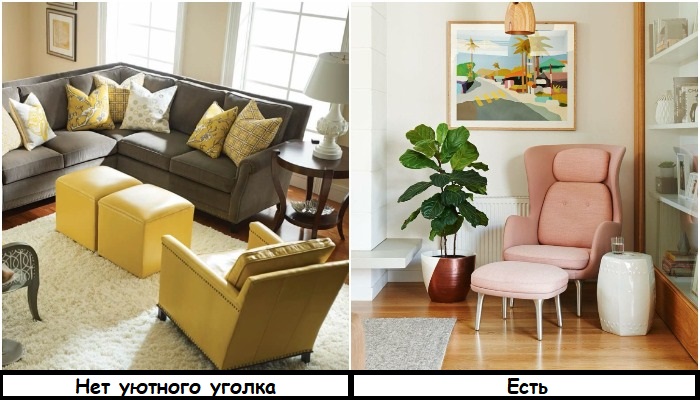 Пусть кресло стоит не рядом с диваном, а в укромном уголке