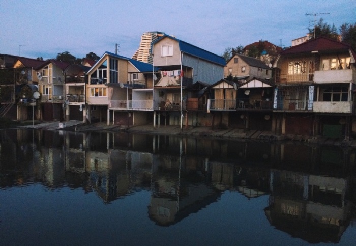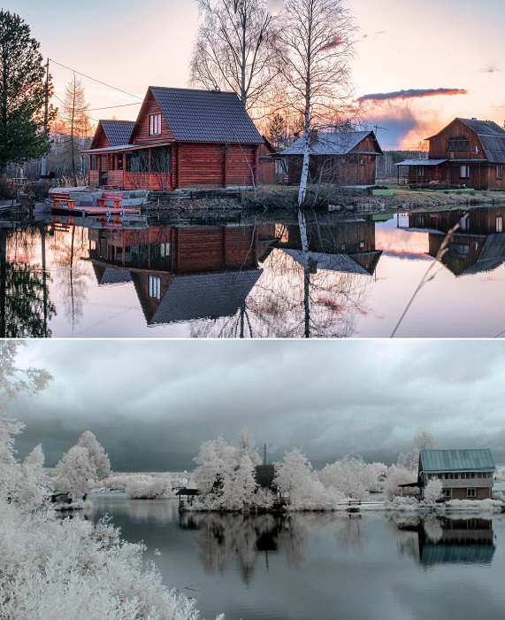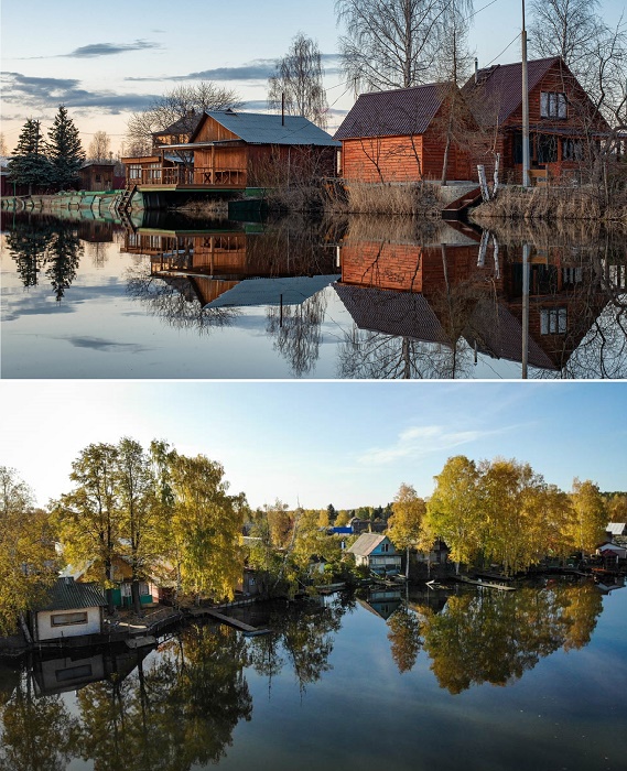 Дома у воды устанавливают только на сваях, чтобы избежать подтоплений во время сильных дождей и весенних паводков («Уральская Венеция», Нижний Тагил). | Фото: ametist.office-nko.ru.